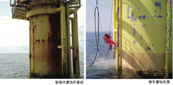 避免腐蝕的另一種常用方法是在鋼結構表面施以由環氧樹脂構成的防腐涂層來隔絕海水。目前,海上風電的防腐常將這兩種方法結合起來,在涂料中加入大量鋅粉或鋁粉,成為犧牲陽極。一旦涂層的阻隔作用削弱,就用犧牲陽極來保護。