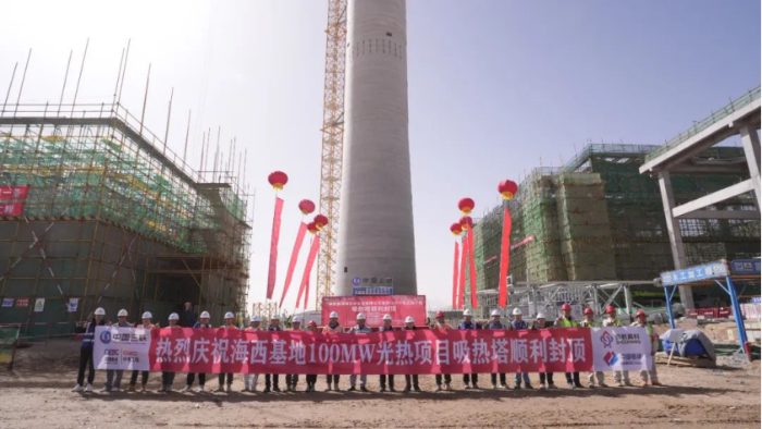 青海格爾木10萬千瓦光熱項目吸熱塔順利封頂