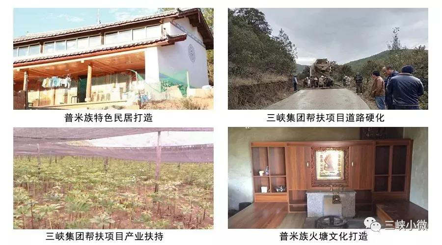 2016-2017年,三峽集團幫扶玉龍縣石頭鄉利苴村,九河鄉金普村、河源村普米族產業扶持272戶,舉辦890人次的種養殖技術科技培訓;硬化道路50.38千米;完成特色民居建設及危房改造54戶,完成金普村大栗樹活動中心建設、金普村通海落組活動中心和提水站建設、普米族特色民居打造和民居改造,完成河源村河源市場改擴建、普米村寨蕎地坪組橋梁建設、河源完小食堂及籃球場建設、河源村黨員活動中心建設、普米村寨河源人飲設施建設;新建太陽能熱水器16戶,太陽能路燈820盞,垃圾集中焚燒池10個。