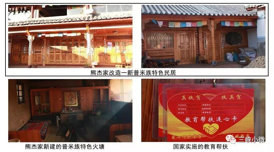 熊杰滿懷深情地說:“我家原來6口人,今年三月份,93歲的老母親去世了,現在5口人。三個女孩,大的兩個女兒考上大學,現在外地當老師,小的女兒已上初中了。三峽集團幫我們建起了普米族火塘,裝飾了普米族墻繪和羊頭標識,還進行了產業扶持。原來居住的都是危房,在政府幫扶下,一家人現在住進了新的普米族民居。我的兩個大女兒都是在國家的幫扶下才上完大學的,現在有了工作,我不用發愁了,真的感謝黨和政府!”