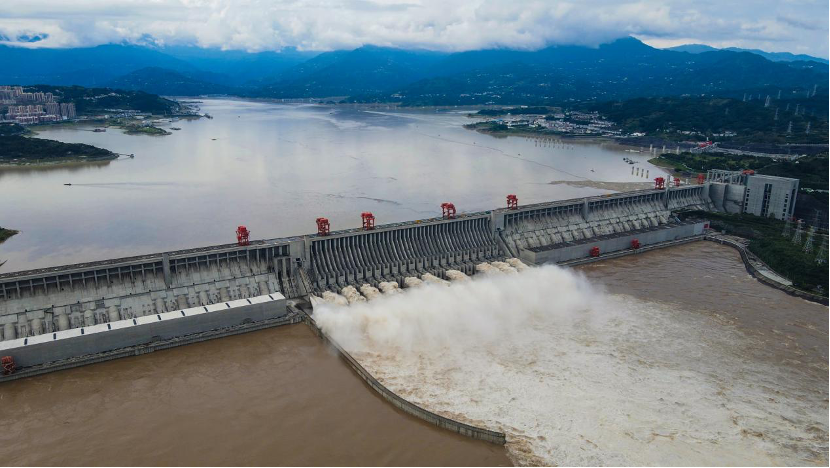 ▲?2020年8月20日,三峽樞紐迎來建庫以來最大洪峰。按照防汛調度指令,三峽樞紐開啟11個泄洪孔洞,出庫流量按49200立方米每秒下泄,削峰率達34.4%。?攝影:陳臣