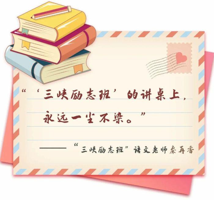 說起“三峽勵志班”有何特別之處,秦再香老師很有發言權。因前任語文老師意外受傷,秦老師在初三時接任了語文教學工作?!斑€記得第一次走進‘三峽勵志班’,講桌上一塵不染,教學用具擺放得整整齊齊,這些細節讓我印象深刻?!鼻乩蠋熁貞浀馈?/p>